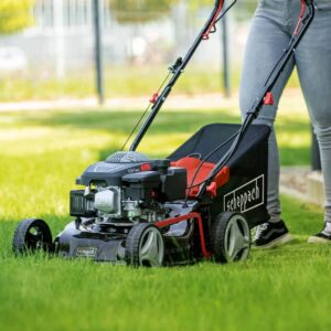 Der MS132-42 von scheppach eignet sich hervorragend für kleine Gärten. Mit seiner Schnittbreite von 42 cm ist er besonders wendig und durch den Selbstantrieb der großen, kugelgelagerten Laufräder kommt man beim Rasenmähen mühelos voran. Neben Mähen mit oder ohne Fangkorb eignet sich der MS132-42 ebenso zum Mulchen. Die integrierte Reinigungsfunktion erleichtert das abschließende Säubern des Stahlgehäuses.