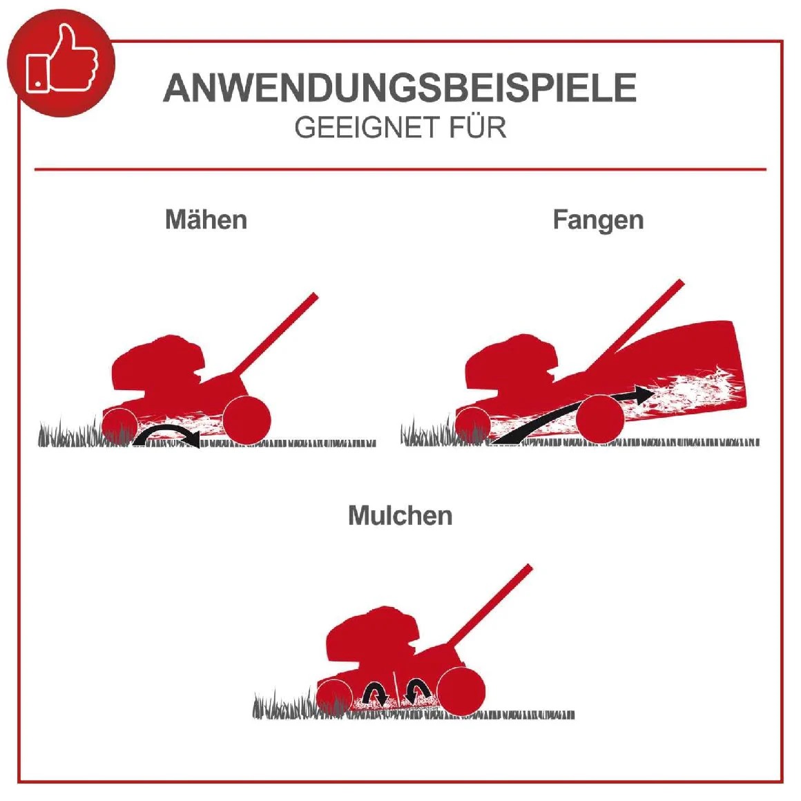 Mähmethoden Fangen, Mulchen, Heckauswurf